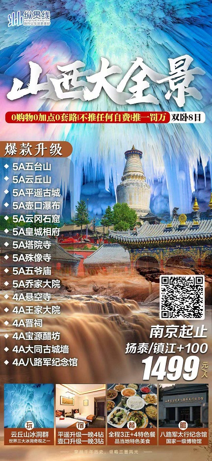【山西大全景雙臥8日游:壺口瀑布 平遙古城 云岡石窟 五臺山 晉祠】.行程