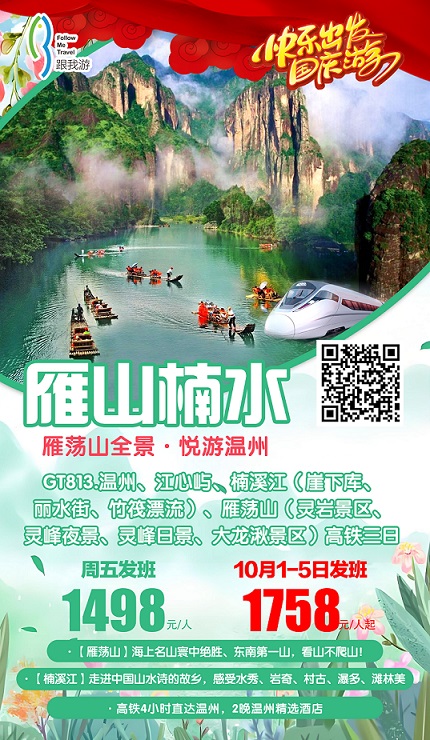 當前位置:首頁 >> 國內長線 >> 9月含十一【周邊高鐵游】線路及報價