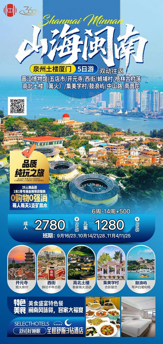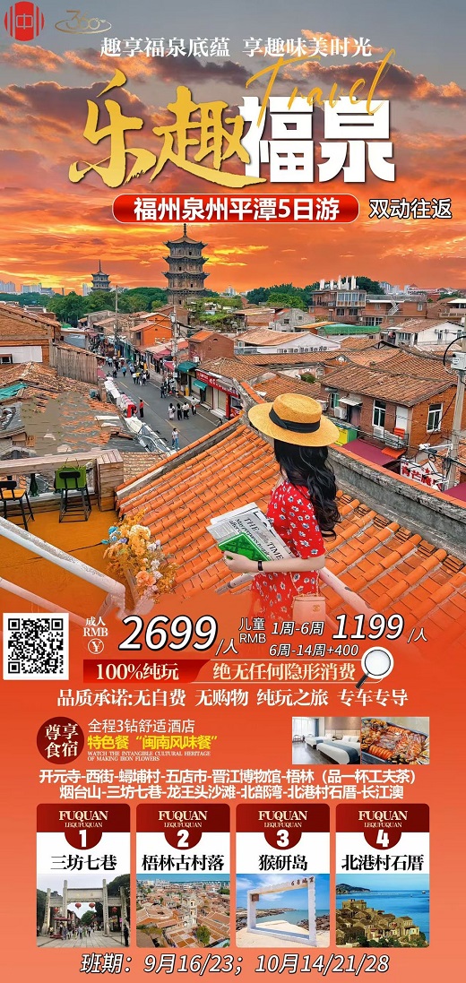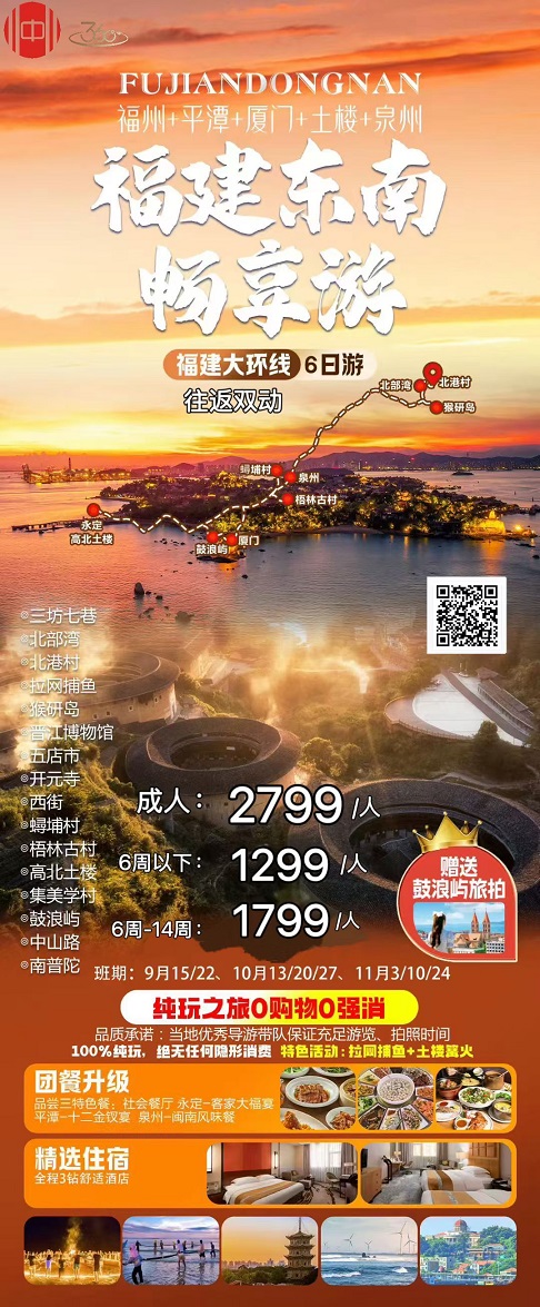 線路名稱:10月【福建:福州 平潭島 白水洋 霞浦 太姥山 泉州 東山島】線路及報價