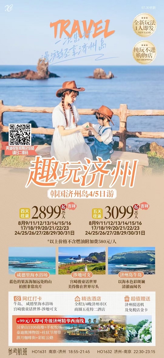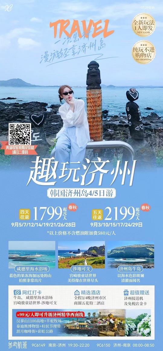 當前位置:首頁 >> 國內長線 >> 8-9月【韓國:首爾、濟州島】線路及報價
