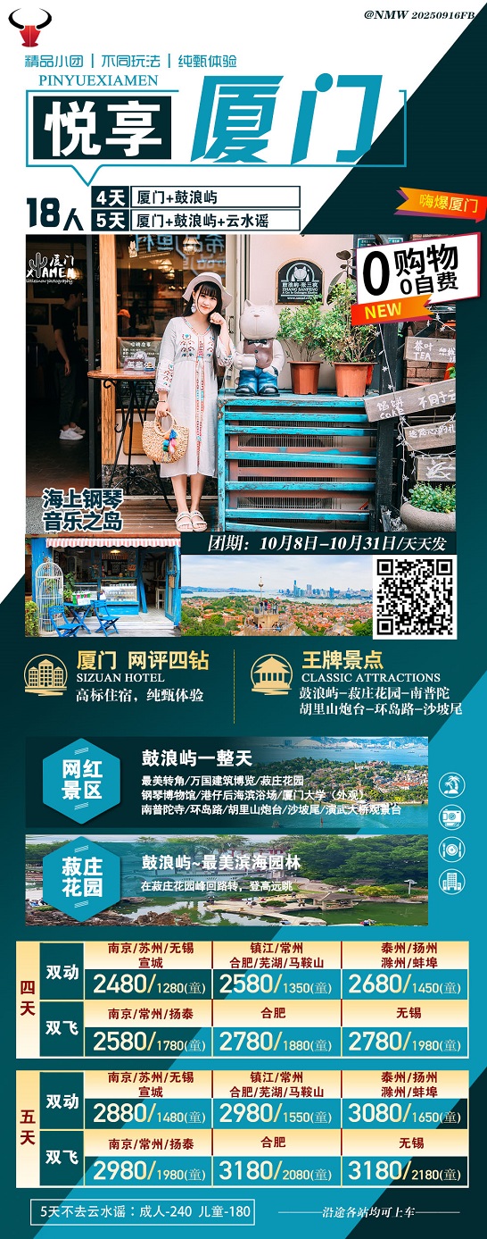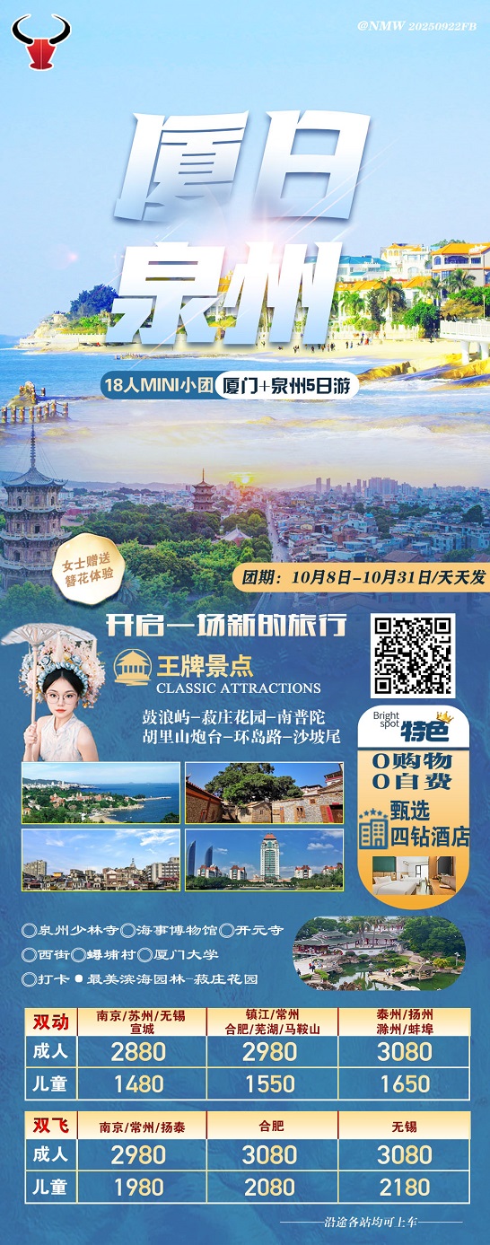 【廈日泉州:廈門鼓浪嶼+泉州5天 18人小團(tuán) 0 購(gòu)物0自費(fèi)】.行程