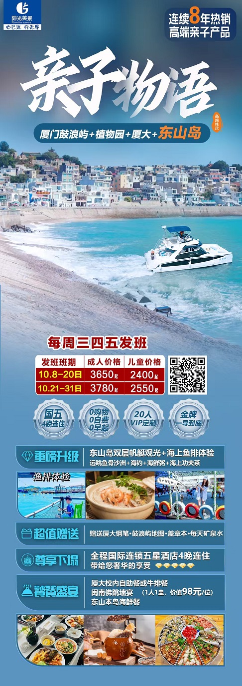 【親子物語(yǔ)廈門:東山島 鼓浪嶼 網(wǎng)紅植物園 東山島帆艇觀光5日游 4晚五星酒店】.行程