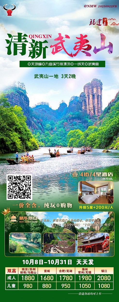 【清新武夷:武夷山主景區(qū)+九曲溪竹排漂流 純玩高鐵3日游 一價(jià)全含】.行程