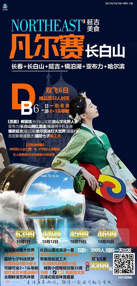 10月【東北:哈爾濱 長白山 延吉 長春 漠河】線路及報價