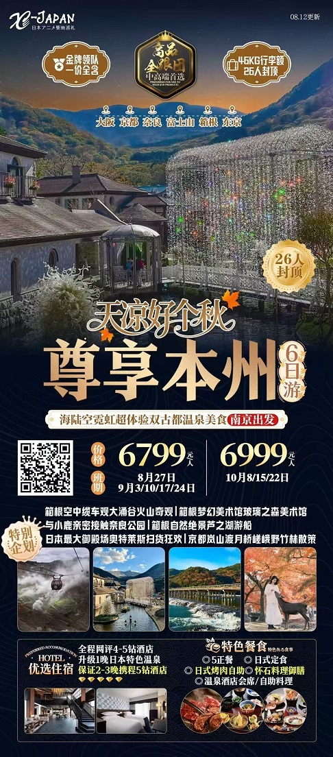 【尊享本州:日本本州雙古都溫泉美食7日游 2晚溫泉+2晚5鉆酒店】.行程