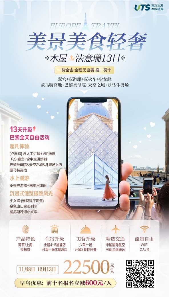 11-12月【歐洲-南京往返:法國 瑞士 意大利 德國 東歐 西班牙 葡萄牙】線路及報價