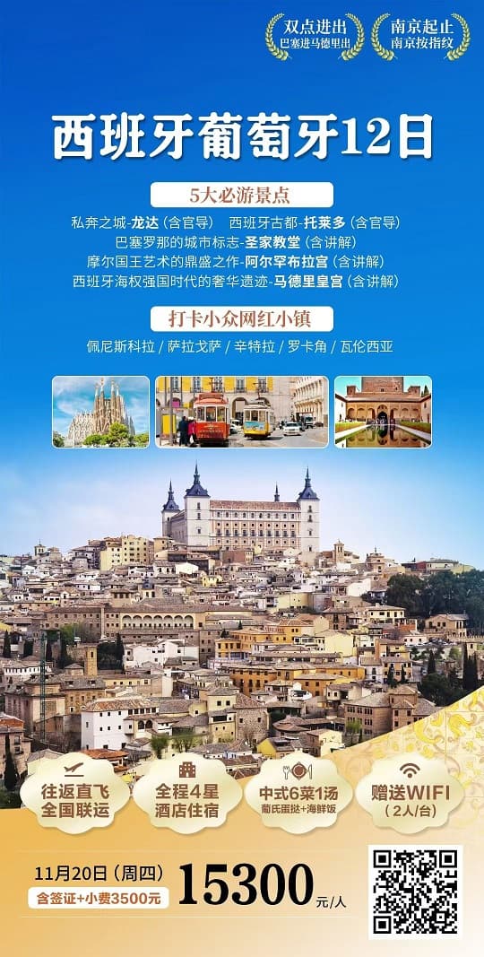 【南京出發歐洲:西班牙葡萄牙9晚12日 馬德里皇宮+圣家教堂】.行程